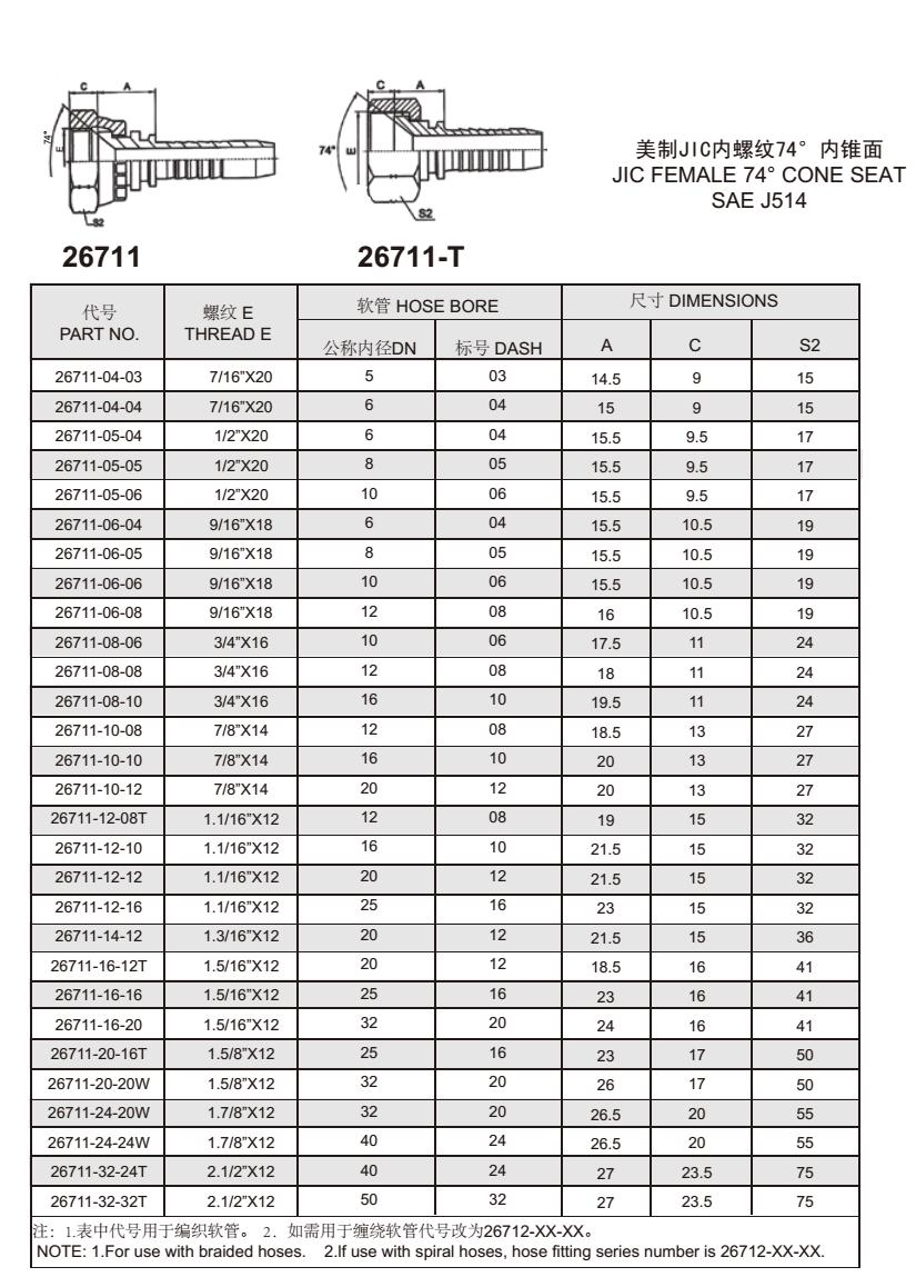 26711 美制JIC內(nèi)螺紋74°內(nèi)錐面